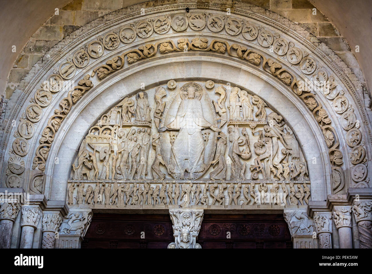 On the main portal of the cathedral, the last judgment is on display in the tympanum, and its centre christ is enthroned in a gloriole held by angels.